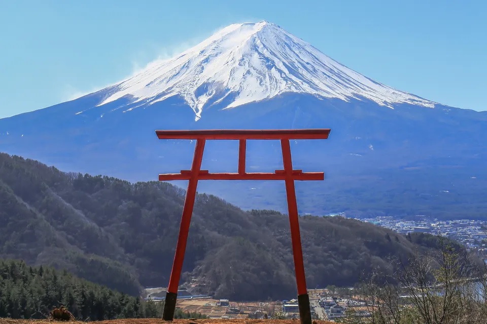 なお、年賀状のイラストになっている「天空の鳥居」と呼ばれる場所は、河口浅間神社の宮司さんが、鳥居ごしに富士山を眺めながら遥拝(ようはい:遠く離れた場所から拝むこと)ができるようにと新しくつくられました。昨年から河口湖の撮影スポットとしても話題になっているようです。