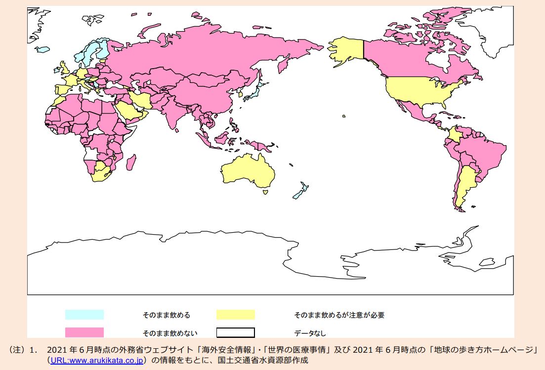なお、水道水が飲める国に関する情報は、サイトにより9カ国と書かれていたり国名が異なる場合があります。これは調査実施年の違いや参照している情報源の違いによるものです。